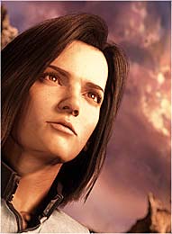 A modelagem e a animao dos personagens realmente so de uma riqueza impressionante. Texturas nas roupas, rugas na pele, sardas, cabelos, tudo colabora para aproximar cada vez mais os bonecos gerados por computador aos atores de carne e osso. Ainda no chegamos ao ponto de confundir uns com outros, mas estamos bem perto. Um dos protagonistas at lembra um pouco o Ben Affleck, at na inexpressividade. Vozes bem escolhidas (Alec Baldwin, Donald Sutherland, Steve Buscemi, James Woods) complementam bem os personagens e acrescentam o toque de interpretao que os modelos tridimensionais ainda no tm. As paisagens que servem de cenrio ao filme tambm so espetaculares, particularmente os panoramas apocalpticos. Visualmente, Final Fantasy tem impacto.